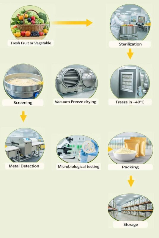 FD freeze-drying technology, short for “FD” (Freeze Drying), refers to vacuum freeze-drying. Under a vacuum condition at -30°C to -50°C, the water in pre-frozen food sublimates directly from ice into vapor without passing through the liquid phase, thus removing moisture and drying the product. Compared with air drying, dehydration, low-temperature frying, hot air drying, and spray drying, freeze-dried products retain their original color, aroma, taste, and nutritional value to the greatest extent.
